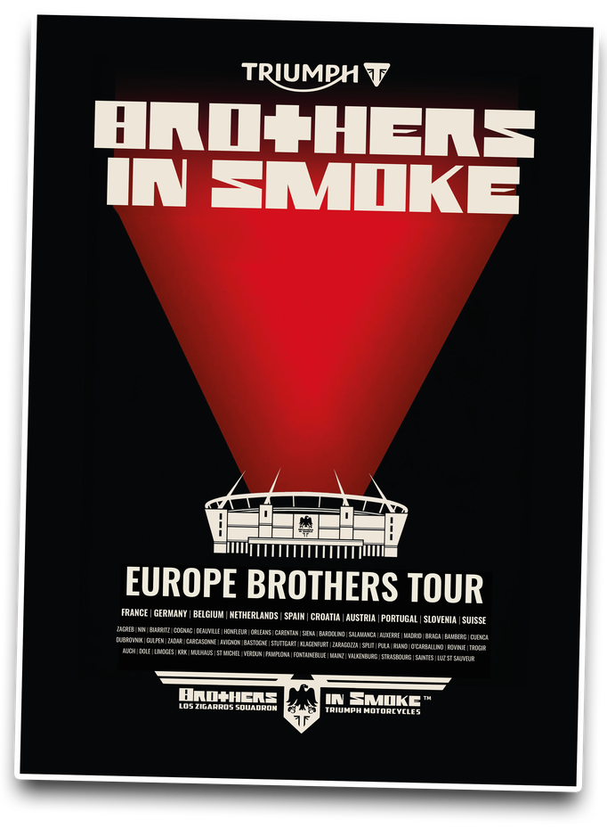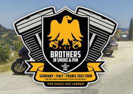 Brothers in Smoke® & Pim Tour 2015, ook wel de '40 graden Tour / The Eagle has Landed. Gezien het feit dat de temperatuur varieerde van minimaal 34 tot 42 graden. Je helm afdoen en dan zweet druppels lekken uit je helm... was niet vreemd.